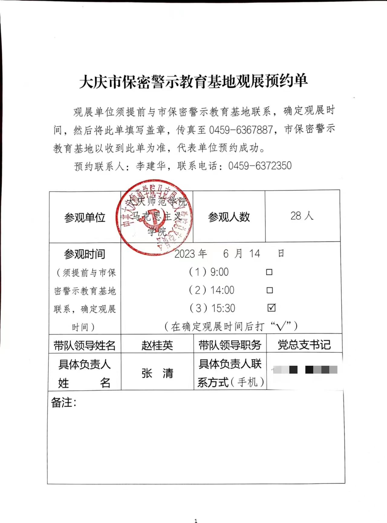 为深入学习宣传贯彻党的二十大精神,强化做好新时代新征程保密工作的责任意识和本领能力,按照国家、省、市保密局工作部署和公司保密工作安排,sunbet教工党支部按照公司要求开展了保密宣传教育活动。如组织教职工参加全省两次保密知识答题活动,参加了在线培训学习,目前短视频系列学习培训正在有序推进中。为强化保密意识,实现有感教育,党总支书记赵桂英同志向大庆市保密警示基地提前进行了预约,于2023年6月14日由赵桂英同志带领全体无课教师前往观展学习。