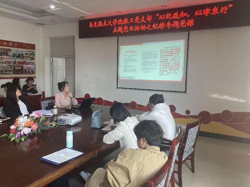 为推进党纪学习教育走深走实,根据省委党纪学习教育工作专班工作提示要求和《大庆师范公司党纪学习教育实施方案》安排,5月16日下午,马克思主义公司党总支书记赵桂英、教工党支部副书记张清,分别以《学纪·知纪·明纪·守纪--学习贯彻<中国共产党纪律处分条例>》《党的纪律建设永远在路上--推动党纪学习教育走深走实》为题,为sunbet全体党员讲授了“以纪致知·以律束行”主题党日活动之纪律专题党课。