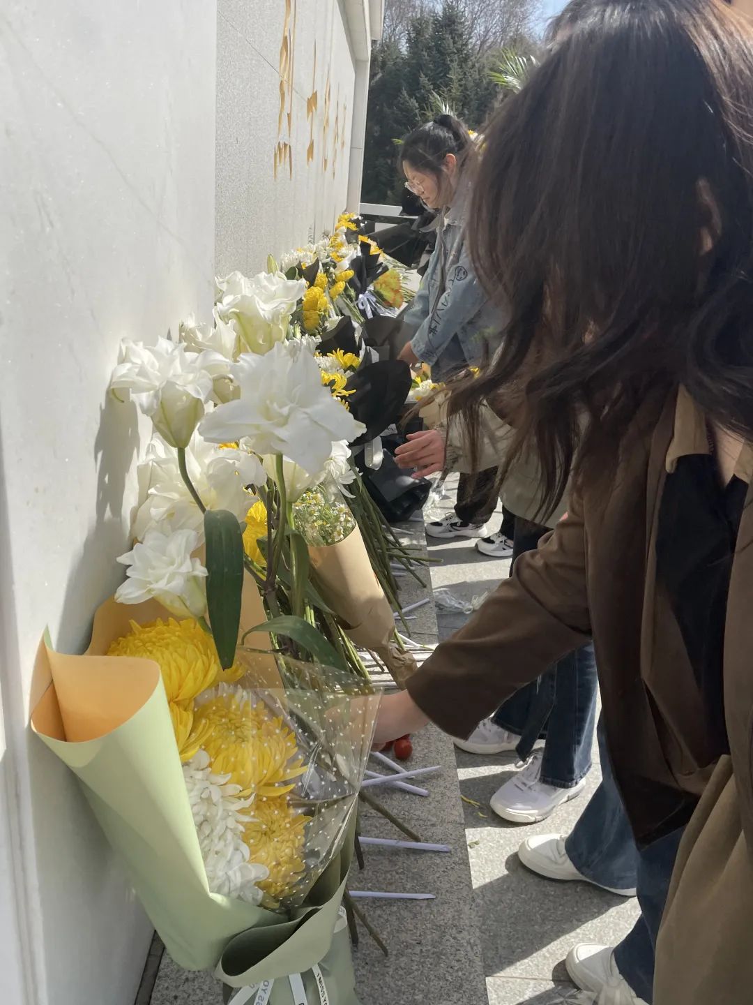 烈士纪念碑前,社团成员整齐列队,献花活动庄严肃穆。全体人员依次向烈士纪念碑敬献鲜花,寄托对烈士们无限怀念与敬仰之情。