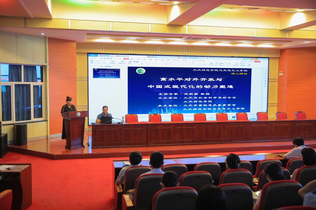 为贯彻落实党的二十大精神,深刻理解中国式现代化的内涵特征和时代意蕴,切实提升思政课教师的理论水平和政治素养,6月19日,大庆市社会科学界联合会、sunbet、大庆市高校思想政治教育学会邀请中国社会科公司研究员、中国社会科公司大学政府管理公司教授、硕士生导师林跃勤,作题为《高水平对外开放与中国式现代化的动力塑造》的学术报告。报告由sunbet经理马吉芬教授主持,公司副科级以上干部、马院全体教师以及学会会员百余人聆听了报告。