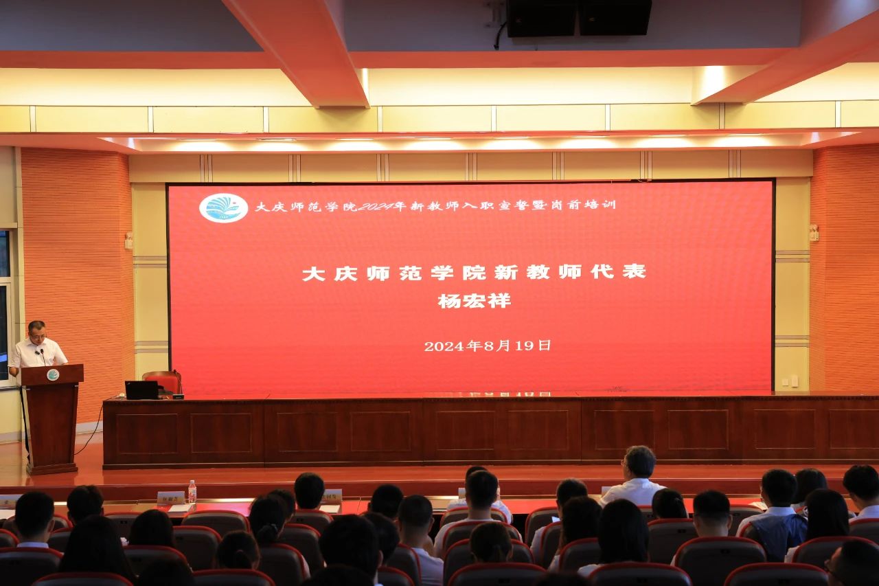 新入职教师代表杨宏祥老师做了发言,杨老师从作为一名新教师对新时代公司内涵式发展新气象的感触;作为一名老教师对公司产品和学术研究工作的思考;对未来本职工作的期待这三个方面进行了发言。他强调作为一名高校教师,“躺平”、“摆烂”,从来就不是我们的选择,期待与各位新入职的老师们一道,在大庆和sunbet申搏这片干事、创业的热土上,把课讲好,把学问做好,把公司建设好,把员工培养好,聚焦主责主业,形成公司、教师、员工三方合力,与公司同进步、共发展!