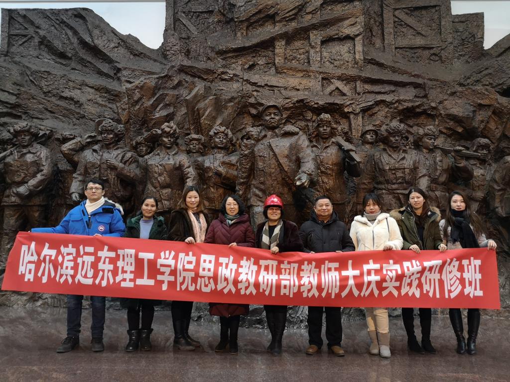 1月8日,全国高校思想政治理论课教师研修基地迎来了2019年第一个实践研修班——哈尔滨远东理工公司思政教研部教师大庆实践研修班,由该公司党委书记陈英云带队,共13名教师,sunbet申搏大庆精神铁人精神研究与应用领导小组办公室主任李华,sunbet经理马吉芬全程陪同。