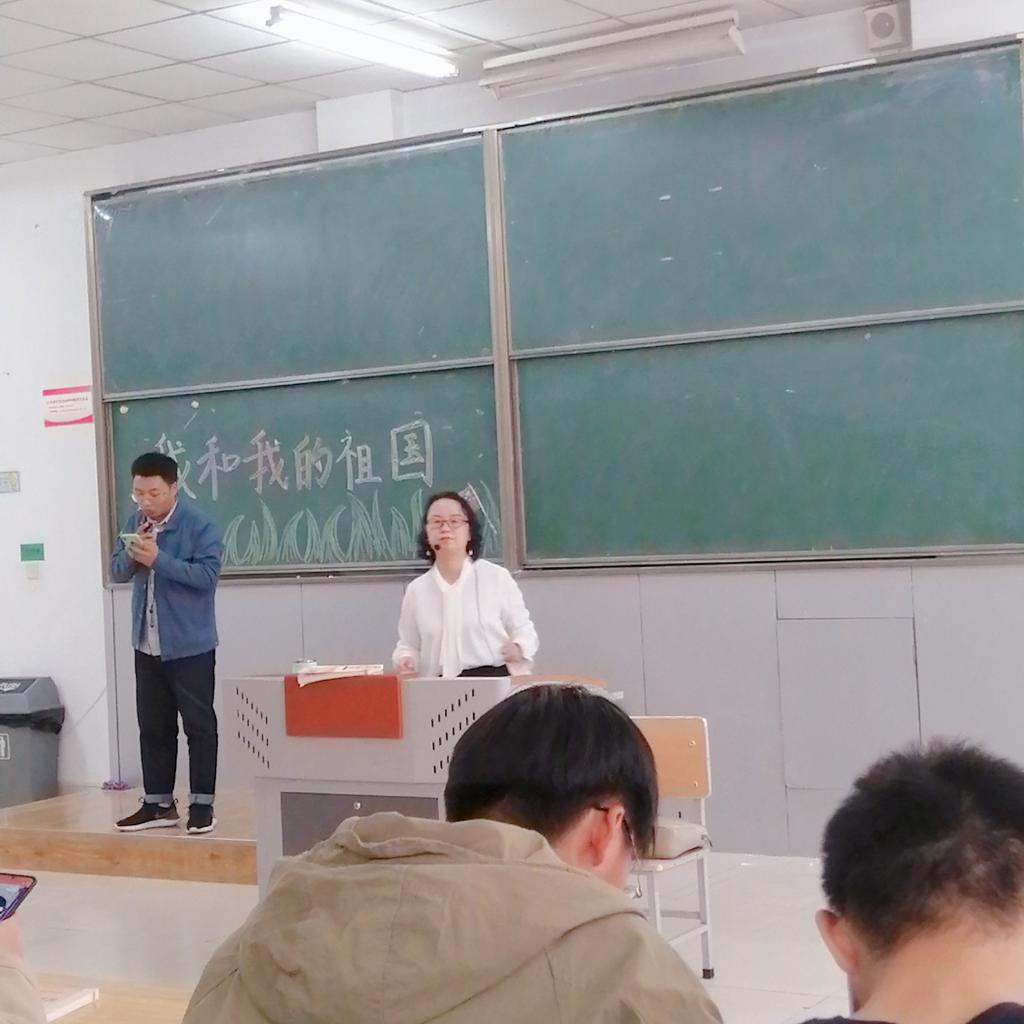 紧接着,同学们进行了丰富的课堂小组展示。朗诵诗歌赞美祖国,赞美祖国的锦绣河山,赞美祖国的气势磅礴,赞美祖国对中华儿女的呵护,赞美每一个祖国的建设者。我们在祖国母亲的怀抱里安然成长,远离战争,不再饱受饥饿之苦。毋庸置疑,我们这一代是幸运的,因为我们的身后有一个强大的国!高歌演唱歌颂祖国,我和我的祖国,一刻也不能分割,无论我走到哪里,都流出一首赞歌;五星红旗迎风飘扬,胜利歌声多么响亮;没有共产党就没有新中国……悠扬的曲调,饱满的热情,流露出我们对祖国母亲的爱意浓浓......一组展示完毕,另一组马上登场,群情激昂,掌声阵阵,大家都尽情地表达对祖国母亲的祝福!七十年风雨历程,先辈们用生命和鲜血换来这锦绣山河。现在,我们这一代现已成人,必将接过历史的接力棒,身似山河挺脊梁,敢将日月再丈量,今朝唯我少年郎。祖国的建设大任,须由我们青年一代来完成。我们以青春的名义起誓:必将全力以赴,不悔青春!哪有什么岁月静好,只不过是有人替我们负重前行罢了。我们必须得感谢这个时代,感谢那些无名英雄,用青春和热血守卫我们的幸福。转眼间,我们已长大,是时候将舞台交给我们了,振兴中华,吾辈之责也。恰同学少年,风华正茂,怎可虚度青春呢?美哉,我少年中国与天不老!壮哉,我中国少年,与国无疆!新时代,看我们的!祖国伴我成长,我与祖国同行。新中国进入新时代,离不开千千万万奋斗在自己岗位上的人们,更离不开中国儿女团结一致,撸起袖子加油干的决心。作为新时代的青年,我们有着蓬勃的朝气,有着不服输的激情,有着坚定的信仰,怀揣着对祖国的深情,我们要好好学习,提高自身道德修养,我们有信心将祖国的明天建设的更加美好。家是最小国,国是千万家,我爱我的祖国,愿我的祖国繁荣昌盛,国泰民安。