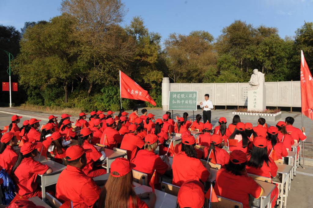来自经济管理公司2018级金融学专业的张悦同学也是深有感触,她说“我们身穿石油工人火红色的衣服,手中紧握着五星红旗,面对着铁人雕塑,聆听陈老师的深情讲述,高唱着《我和我的祖国》《踏着铁人脚步走》,我们的心与国旗交相呼应,那份国家给予我们的安全感,五千年巍巍华夏的厚重感,让我对祖国的爱恋由心而生,我深深感受到了中国精神所给予我们的无穷力量。”