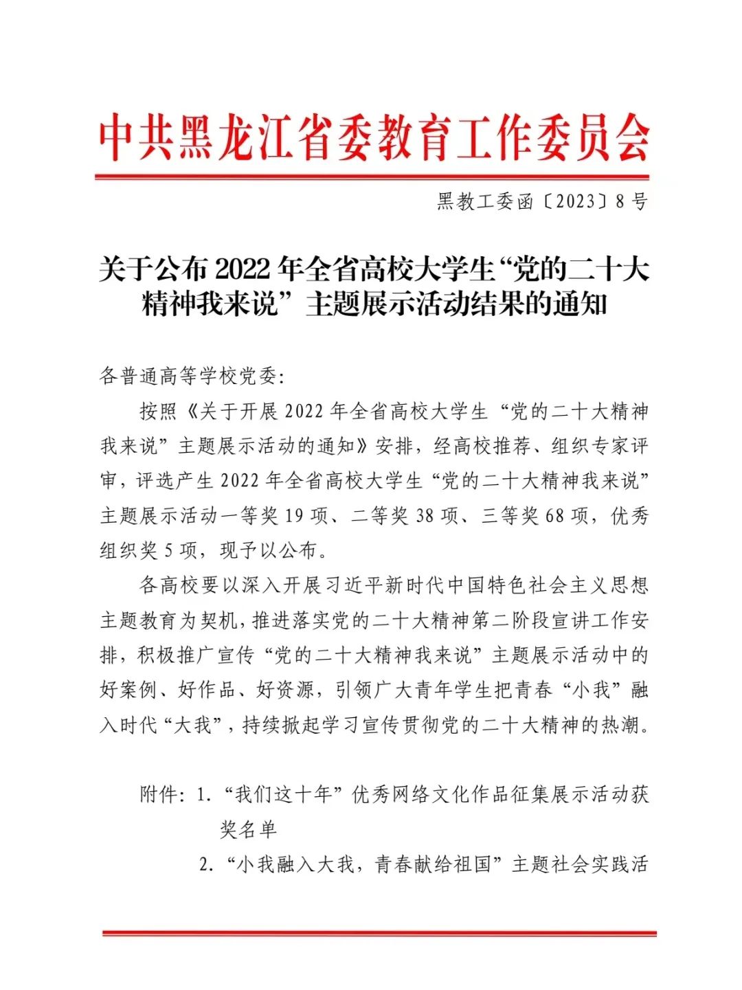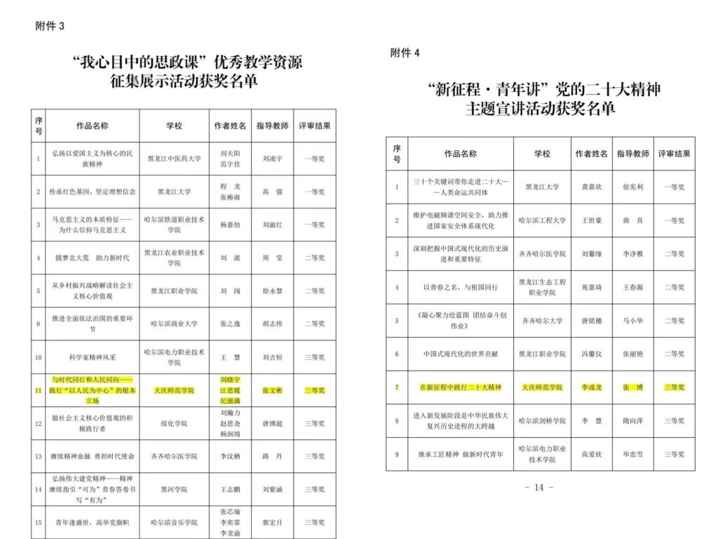 近日,黑龙江省委教育工委公布了2022年全省高校老员工“党的二十大精神我来说”主题展示活动获奖名单,公司sunbet报送的参赛作品在众多作品中脱颖而出,荣获三等奖3项。